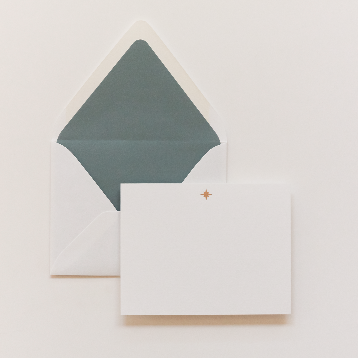 - 8 flat A2 notecards (sized 4.5 x 5.5") with gold star motif